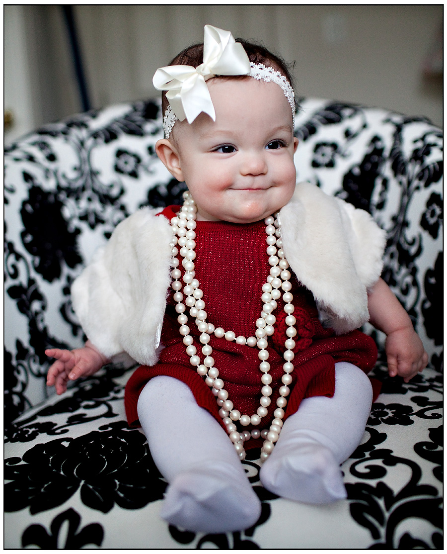 We had a quick holiday session for Nicolette so that her parents could send out some Christmas cards.  Although she was a little uncooperative, I managed to get a few useable pictures of her adorable smile and look.