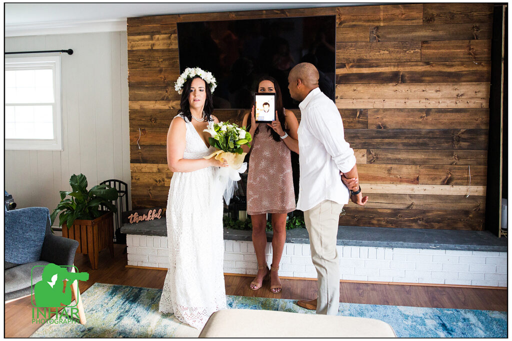 In the times of Covid-19, where we are unable to celebrate with all our friends and family, thank goodness for technology. Technology allowed the Pastor to perform the ceremony via facetime on an ipad and their friends and extended families were able to witness the union of these 2 through Zoom video conferencing. Gotta make the best of a situation right? Congrats guys!